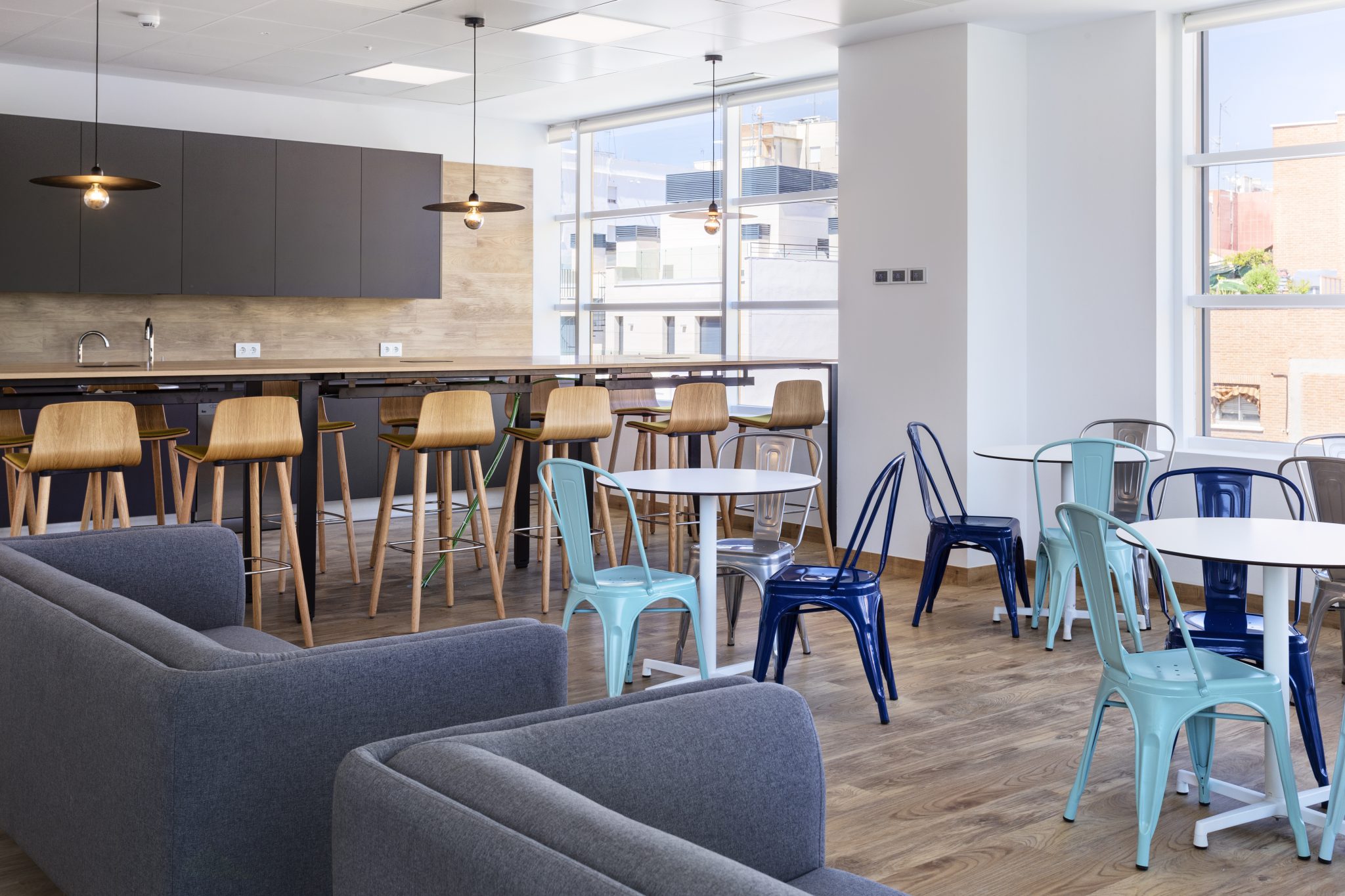 El eje personas ha sido definitivo a la hora de abordar el diseño, buscando un espacio sin despachos donde poder colaborar y aprovechar el talento al máximo. La zona informal, lejos de dedicarse sólo a hacer pausas, se concibe como un gran espacio colaborativo abierto tanto a empleados como a partners, y que permite al grupo interactuar con frescura, cercanía y compromiso.