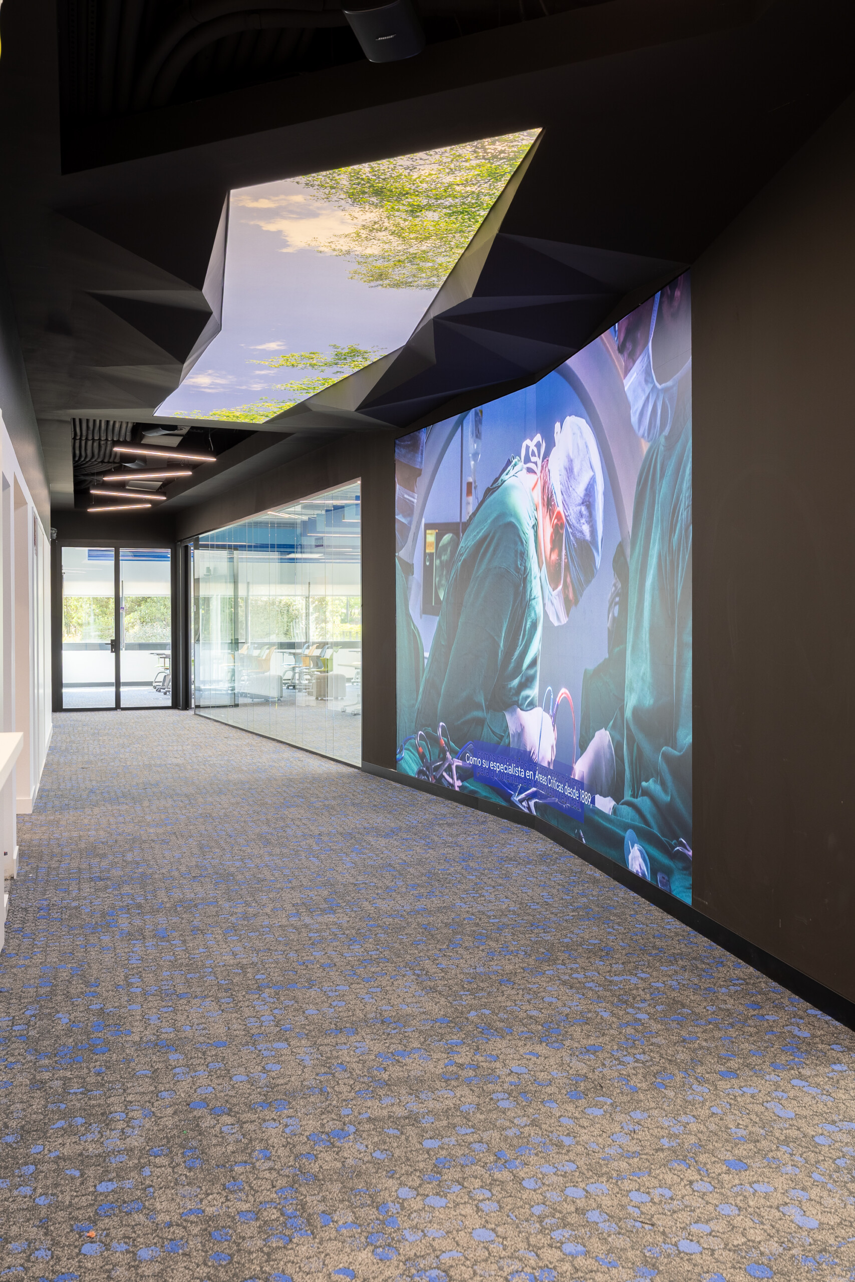 El proyecto de tecnología también ha sido un reto que integrar en el proyecto de implantación, buscando los partners que mejor se ha adaptado a los requerimientos de Dräger: Ricoh y Trison, generando un espacio absolutamente experiencial en zonas no sólo de trabajo sino de showroom interactivo y de relación con clientes.