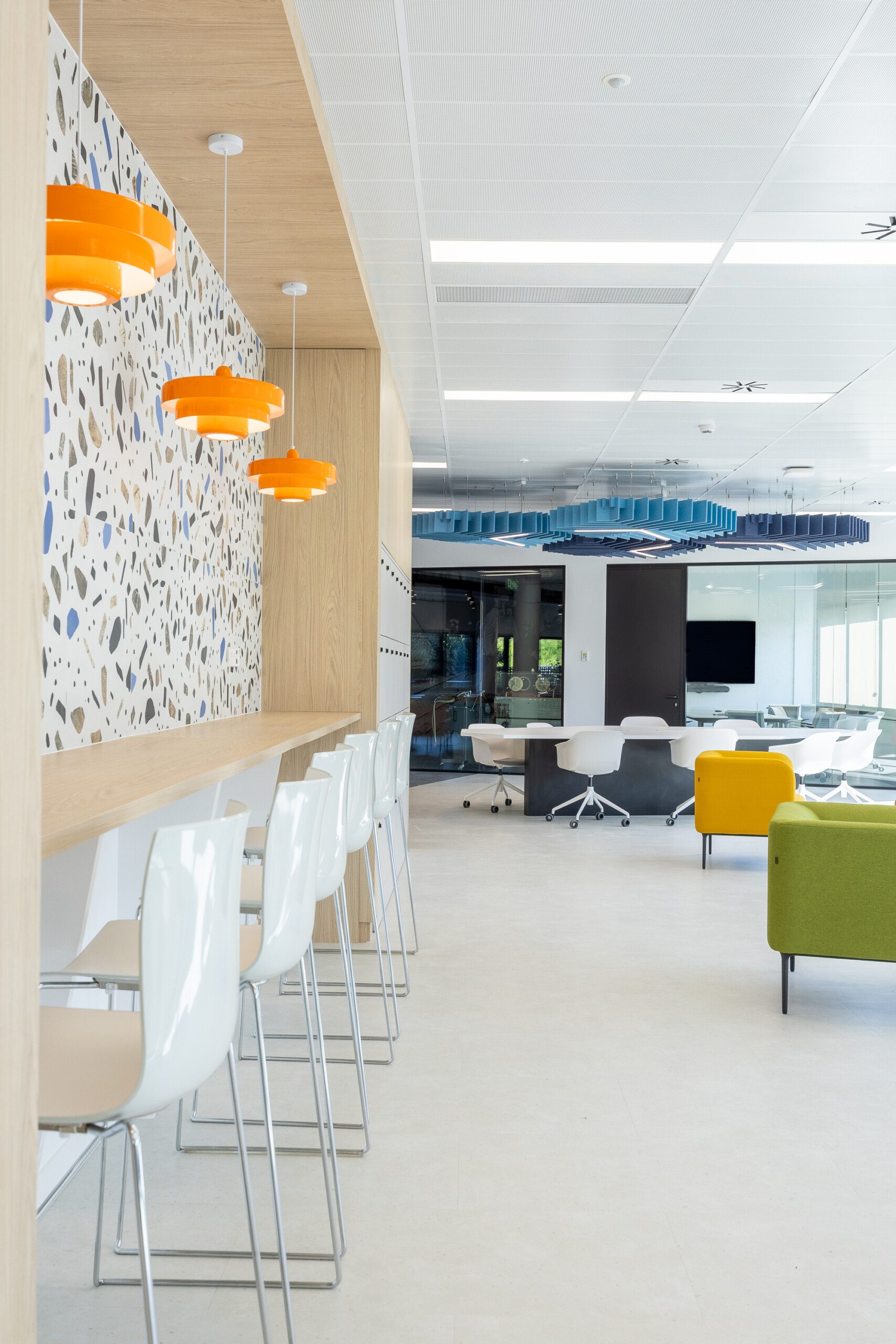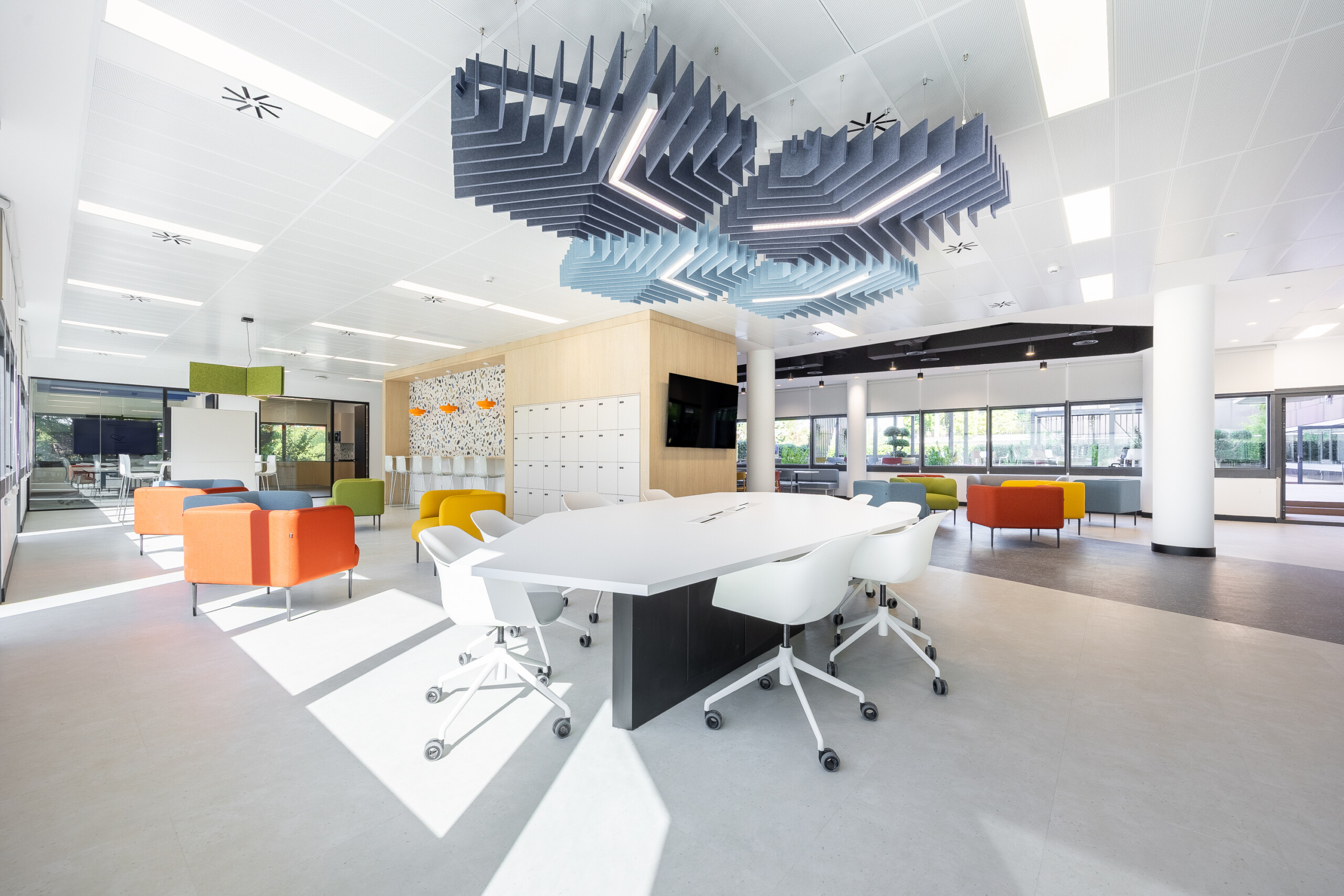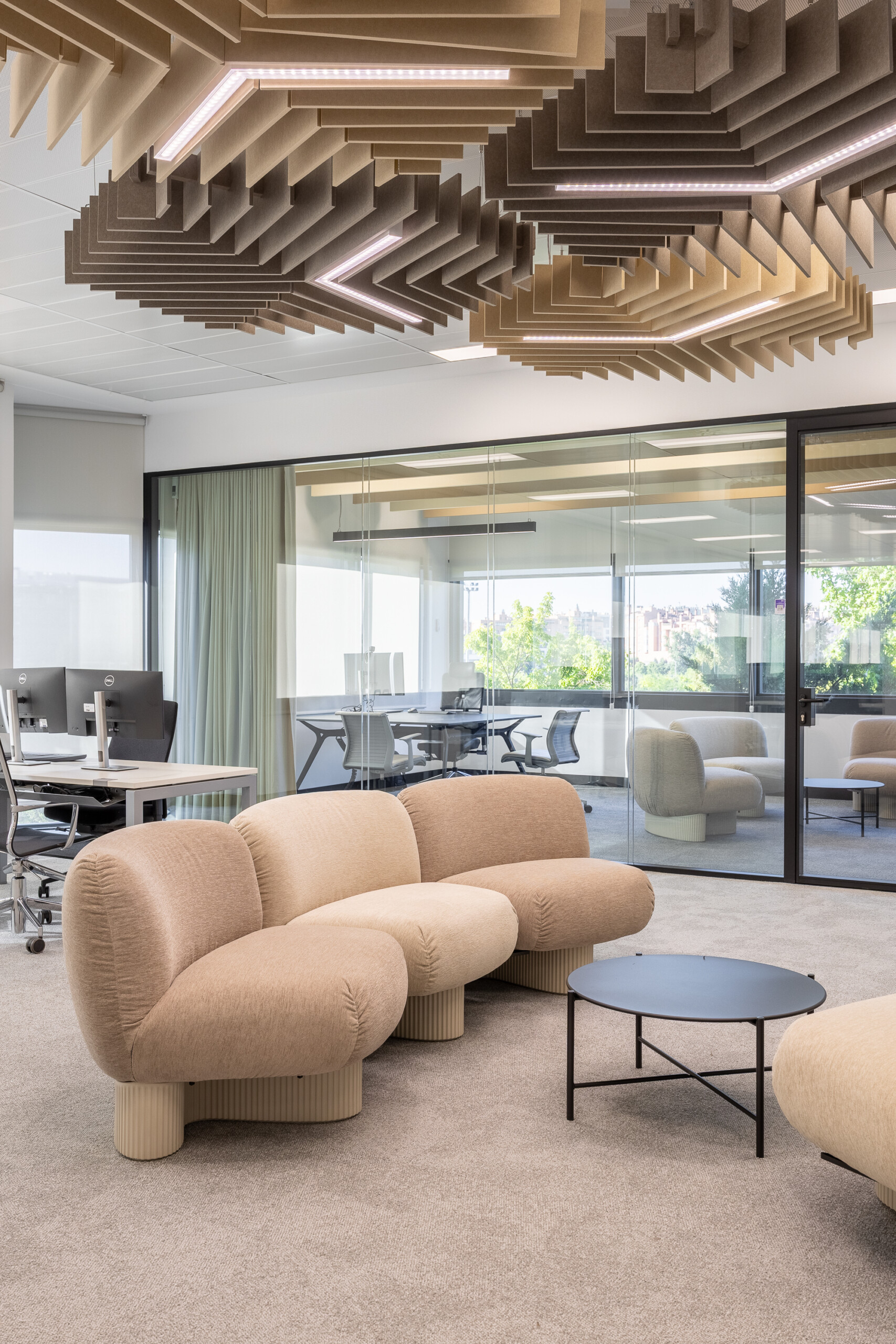 Uno de los hitos claves del proyecto de plug&go, al disponer Dräger de varios usos diferenciales en su nueva sede, es la convivencia de zonas de trabajo, talleres, formación, espacio exterior y zona de clientes, y ha sido el control del ruido. Se ha contado con la empresa líder en Ingeniería Acústica Audiotec que ha auditado y certificado el espacio, otorgando la máxima cualificación como Hábitat Acústico: Espacio Acústico Saludable.