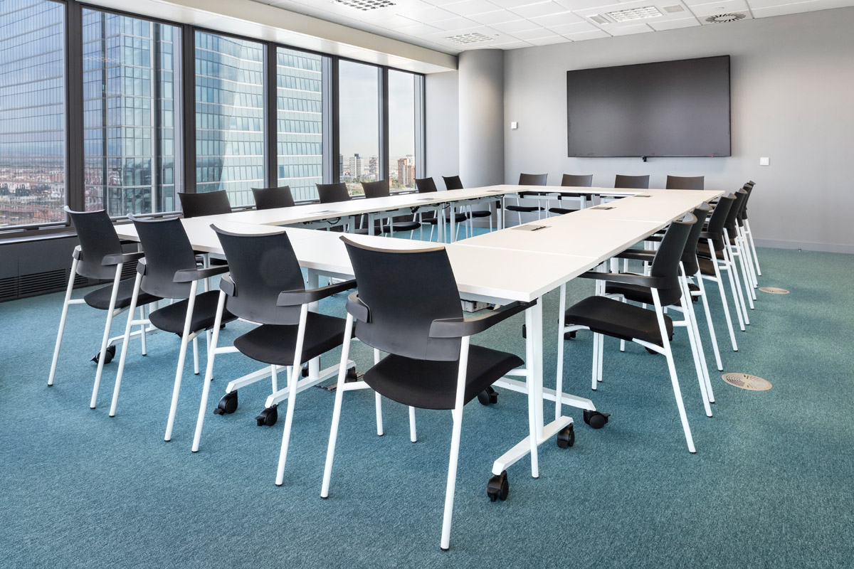 Que ha presentado grandes retos para el equipo de plug&go y todos ellos con sobresaliente. Colaborar con éxito con el equipo técnico de Mutua Madrileña, propietario de la torre y gestionar en plena pandemia una implantación con el equipo internacional de Medpace en UK y Alemania. El resultado ha sido una sede cercana, con un claro diseño de bienestar, no en vano se dedican a cuidar de personas, y una cercanía que se percibe desde la entrada. Colores aguamarina combinan con las mejores vistas de la ciudad y un cielo azul intenso, en una paleta de tonalidades que te sumergen de lleno en la felicidad. No hemos tenido que hacer uso de maderas y verde biofilia para transmitir confort.