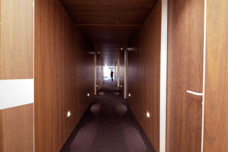 La madera y materiales nobles son el hilo conductor del proyecto proporcionando un entorno de bienestar al equipo humano que emprende este gran hito del grupo español en Madrid.