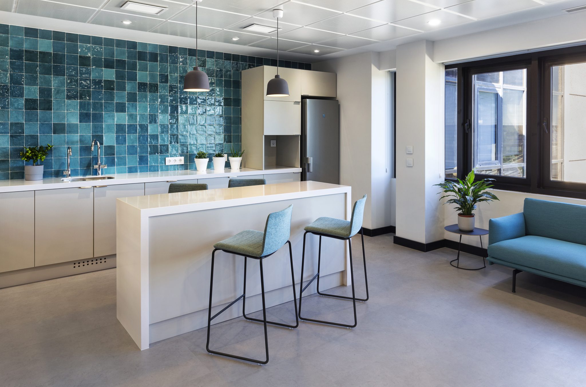 It contains spaces that make you feel at home. Many times, when you walk through the office you feel that you are in a place that connects with comfort. All the materials, colours and textures are thought through to the last detail. Technological innovation allows 360º connectivity with teams and countries.