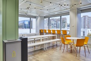Además de los puestos individuales -tanto personales como no asignados-, las áreas de formación o las salas de reunión -para un número de usuarios variable y en muchos casos, reconfigurables-, en las oficinas actuales encontramos nuevos espacios impensables en las oficinas tradicionales. Estos generan nuevos tipos de experiencia para empleados y colaboradores. Hablaremos de algunos ejemplos.