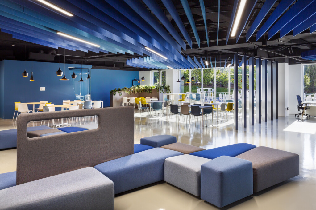 Las empresas innovadoras cuentan con diversos tipos de espacios que inspiran la creatividad en una oficina. Unos son entornos colaborativos diseñados con el propósito de la co-creación, que fomentan la interacción y el trabajo en equipo. Estos espacios suelen contar con gradas, elementos móviles, pizarras… y herramientas tecnológicas para compartir ideas y proyectos en tiempo real, presencial y/o en remoto.